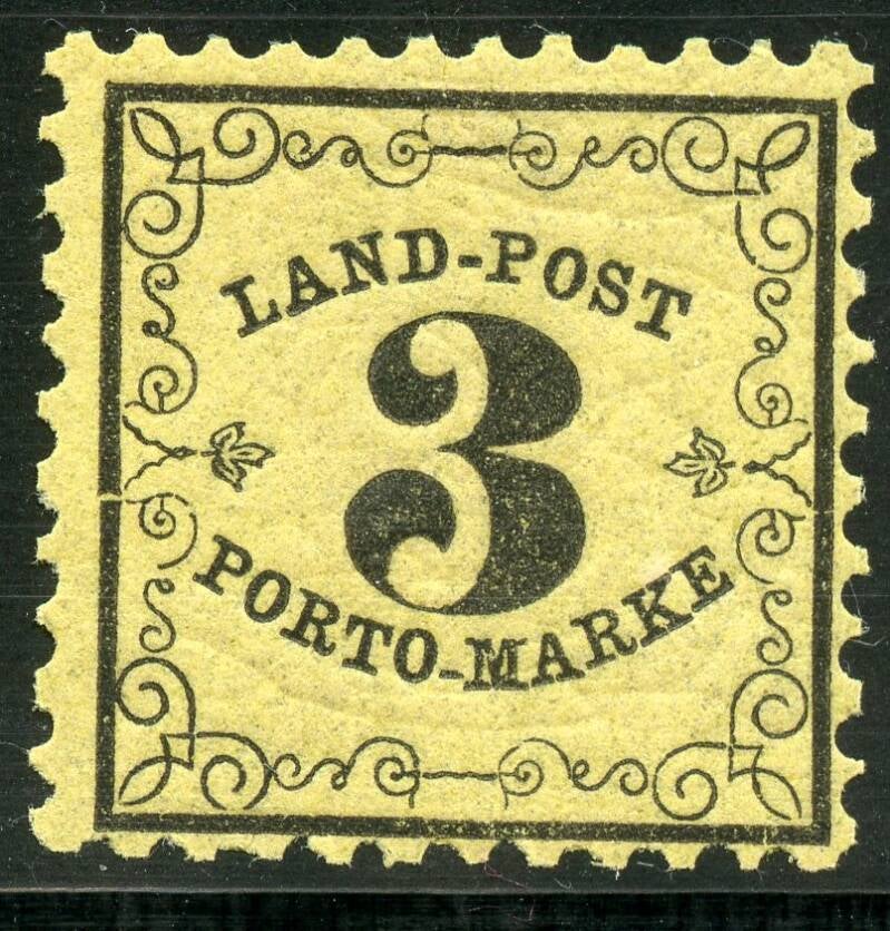 1862 Portomarken Nummer 1x, 1y, 2x, 2y, 2x PF II (E von Marke verstümmelt wie Z), 3